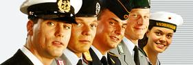 Logo der Seite "bundeswehr.de". Wurde verfälscht. Der letzte Soldat (Matrose) wurde durch eine Frau ersetzt.